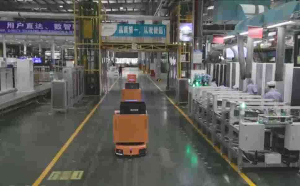 为车载冰箱物流配送打造的智能解决方案,,,包含产中物流通过潜伏举升AMR搬运至线边,,产后成品物流智能仓储,,流程包含产中物流智能齐套入库,,,,线边安灯叫料AMR智能配送至线边,,,,成品入库、、、、出库,,,,通过无人堆高车机器人,,智能仓储管理替代人工作业管理,,,实现更高存储、、、、更高效率、、更具柔性化的解决方案。。